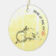 Original Malerei eines Wasserbüffels und eines Kindes von RB. Design auf Keramik Rundschmuck mit texturiertem Papier (Druckbild) + Zazzle Filter. Sie können den Text (Schriftart, Farbe, Größe und Position), die Größe des Designs und den Filter einfach ändern, indem Sie auf die Schaltfläche Anpassen klicken. Matching Grußkarte, Urlaub Postkarte, Einladung, Handwerk, Handwerk Party und mehr... Ideal für Chinesen und Vietnamesen im neuen Jahr des Ochs 2021 oder Geburtstag (Menschen im Ox Jahr geboren).