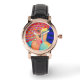 Uhr, Klassische Damenuhr mit schwarzen Lederarmband