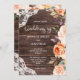 Schicken Sie Ihren Gästen eine wunderschöne Hochzeitseinladung durch dieses Holz & Spitzen mit rot-pfirsichfarbenen Blumen. Ideal für rustikale Hochzeiten, Landschaften und Hinterhofhochzeiten.