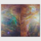 Stilisiertes Bild des Orionnebels. Große, bunte Staub- und Gaswolken, Nebel sind die Geburtsstätten neuer Sterne. Der Orionnebel ist einer von vielen Nebel in der Milchstraße Galaxie.