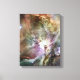 Ein absolut atemberaubendes kosmologisches Bild des Orion-Nebels, ein Zusammenspiel von Bildern aus dem Hubble- und Spitzer-Weltraumteleskope, das zu einem Raum mit Regenbogen in wunderschönen Pastellfarben führt.