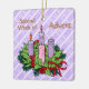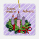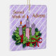 Our square violet ornament for the Second Week of Advent features an Advent wreath on the front atop a pattern of white diagonal stripes containing the word PEACE. Peace is the theme of the week. A heartfelt sentiment appears on the back. + Front: The Advent wreath is made of evergreens and holly with two violet candles being depicted aa lit. In actual practice, the other candles--one pink and one violet--would be customarily lit on subsequent Sundays. Such candles are pictured on additional ornaments. The background here is violet (or light purple or lilac). Violet is the liturgical of the pre-Christmas season, symbolizing repentance, reflection, preparedness, and the royalty of Jesus as King of Kings. + Image Credits: Black and white Advent wreath AI-generated by mimicoloringdesigns via Pixabay, modified and colorized by Saints_Aplenty; bow by Elionas also via Pixabay. + Back: A wish for PEACE that can be personalized.