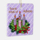 Our square violet ornament for the Fourth Week of Advent features an Advent wreath on the front atop a pattern of white diagonal stripes containing the word LOVE. Love is the theme of the week. A heartfelt sentiment appears on the back. + Front: The Advent wreath is made of evergreens and holly with all four candles depicted lit. The background is violet (or light purple or lilac) because it is the liturgical color of the pre-Christmas season. The mood having shifted last week from penitence, reflection, and preparedness to joy at the coming of the Savior, the color violet now emphasizes the royalty of Jesus as Son of God, Son of David, and King of Kings. + Image Credits: Black and white Advent wreath AI-generated by mimicoloringdesigns via Pixabay, modified and colorized by Saints_Aplenty; bow by Elionas also via Pixabay. + Back: A wish for LOVE that can be personalized.