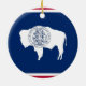 Feiern Sie den Urlaub mit unserem bezaubernden Weihnachtsschmuck mit der Fahne von Wyoming! Dieses Dekor, das mit viel Liebe zum Detail gestaltet wurde, ist mehr als nur eine festliche Dekoration; es ist eine Hommage an Wyomings einzigartiges Erbe und seine zerklüftete Schönheit. Das Design zeigt stolz die Fahne des Staat mit einer Silhouette eines Bison in Weiß auf einem blauen Feld, umgeben von einem weißen und roten Rand. Dieses Design symbolisiert Wyomings natürliche Landschaften, Wildtiere und Pioniergeist. Ob Sie nun Ihren Weihnachtsbaum dekorieren oder ein wohlüberlegtes Geschenk machen, dieses Ornament fügt Ihren Feierlichkeiten eine authentische Touch Wyoming Stolz hinzu. Dieses Weihnachtsschmuck der Wyoming-Fahne aus hochwertigen Materialien ist so konzipiert, dass es dauerhaft und optisch ansprechend ist und in den kommenden Jahren zu einem beliebten Bestandteil Ihrer Urlaubstraditionen wird. Sein lebendiges Design und der Charme seiner Ferien machen es zu einem idealen Ort, um Ihre Bewunderung für Wyoming während der Festsaison zum Ausdruck zu bringen.