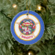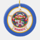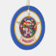 Erleben Sie Ihren Urlaub mit unserem Weihnachtsschmuck mit der Staatsflagge! Genießen Sie den Urlaubssinn und präsentieren Sie Ihre Liebe für den Nordsterner Staat mit unserem sorgfältig gestalteten Dekor, das mit dem lebendigen Design der Minnesota-Fahne geschmückt ist. Der kühne blaue Hintergrund mit dem ikonischen Staat-Siegel, das einen Bauer, einen Indianeramerikaner, einen Pionier und eine Landschaft darstellt, erfasst das Wesen von Minnesotas reicher Geschichte, Kultur und natürlicher Schönheit. Unser Dekor ist aus langlebigen Materialien gefertigt und ist so konzipiert, dass es viele Urlaubssaisons in Anspruch nehmen kann. Es bleibt Jahr für Jahr ein gepflegter Bestandteil Ihrer festlichen Dekoration. Egal, ob Sie an Ihrem Weihnachtsbaum hängen, auf einem Feiertagskranz ausgestellt sind oder als nachdenkliches Geschenk an die Minnesotaner geschenkt werden, dieses Ornament fügt jedem Urlaubsambiente eine Touch Staatsstolz hinzu. Feiern Sie den Zauber der Urlaubssaison und beleuchten Sie Ihre Zuhause mit Minnesota-Geist mit unserem Fahnenschmuck, das perfekte Ergänzung zu Ihrem Urlaubsstil ist.
