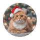Niedlich Ginger Britische Kurzhaarkatze mit einer Weihnachtsmannmütze.