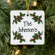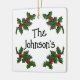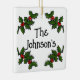 Grüne, heilige Äste mit roten Beeren sitzen in allen vier Ecken und prägen den Text in der Mitte. Eine Seite sagt "Frohe Weihnachten", die andere "Die Johnson's". Auf beiden Seiten kann der Text angepasst werden.