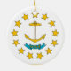 Feiern Sie die Urlaubssaison mit unserem bezaubernden Weihnachtsschmuck unter der Flagge von Rhode Island! Dieses mit Liebe zum Detail gestaltete Dekor würdigt die reiche Geschichte und das maritime Erbe der Insel Rhode. Das Design zeigt stolz die Fahne des Staat mit einem goldenen Anker, der auf einem weißen Feld umgeben ist, umgeben von dreizehn Goldstern, die die ursprünglichen Kolonien und das Motto des Staat "HOPE" darstellen. Der Anker symbolisiert Hoffnung und Standhaftigkeit, was die Rolle der Insel Rhode als Staat im Ozean widerspiegelt. Ob Sie Ihren Weihnachtsbaum schmücken oder als nachdenkliches Geschenk erhalten, dieses Ornament fügt Ihren Feierlichkeiten eine authentische Touch des Stolzes der Insel Rhode hinzu. Dieses Weihnachtsschmuck aus hochwertigen Materialien, das unter der Flagge Rhodos steht, ist dauerhaft und optisch ansprechend, sodass es zu einem beliebten Bestandteil Ihrer Urlaubstraditionen wird. Das lebendige Design und der festliche Charme machen es zu einem idealen Ort, um Ihre Bewunderung für Rhode Island während der Ferienzeit zum Ausdruck zu bringen.