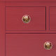 Schönes, goldgelbes Blätterrollwerk mit einem roten, polierten Orb. Ideal für die Aktualisierung von Küchen- oder Badezimmerschränken in elegantem, luxuriösem Stil oder für den eleganten Look der Zimmer.