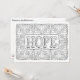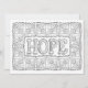 Hoffnung - Ein farbiges Blumenmuster bildet einen Rahmen für das Wort "Hoffnung" in großen Konturen mit einer femininen Schrift. Farbe dieser Karte und fügen Sie Ihre Nachricht auf die Rückseite. Klicken Sie auf Anpassen, um weitere Optionen für Papier und Größe zu erhalten. Von OrnaMENTALs™ fühlen sich gute Worte Farbbuch. OrnaMENTALs Coloring Fun for All Ages, Design #0117. Original-Kunstwerk von Sue Chastain, suziqcreations.com.