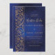 Ornate Floral Gold Blue Nuestra Boda Wedding Einladung