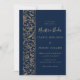 Ornate Floral Gold Navy Nuestra Boda Wedding Einladung