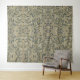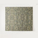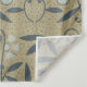 Ornate floral pattern with dark blue vines and leaves on a beige background. White circular flowers with gold accents add elegance and contrast.
