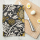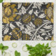 Ornate floral pattern with large gold flowers and cream leaves on a black background. The design is intricate, vintage-inspired, and elegant.