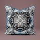 Artistic mandala pillow in delft blue and black. Fine linework and ornamental detail bring bold, stylish character.