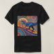 Intricate mandala patterns and luminous spirals frame a blue, scaly dino cruising a purple board. Detailed linework and festival-ready color give this piece a rich, boho vibe.