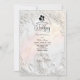 Invite your guests to a timeless union with this elegant design, featuring a classical faux stone aesthetic that brings museum-quality romance to your special day.This design captures the grandeur of 18th-century European architecture. The artwork features a printed effect simulating a 3D bas-relief sculpture. At the header, a delicate cherub plays the violin, flanked by elaborate floral scrollwork and blooming roses. The base of the design showcases a pair of graceful swans and a silhouette icon of a bride and groom, all rendered in shades of ivory and cream to resemble carved plaster or limestone. The background features a soft, faux blush pink marble texture, adding warmth to the cool stone tones.This product is a flat printed image with a visual texture effect. It does not contain actual raised plaster, embossed paper, or real stone materials.