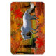 Ein andalusisches Pferd läuft mit deutschen Schäferhunden durch Herbstlaub.