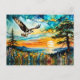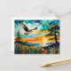 Osprey im Flug über Wildblumen bei Sonnenuntergang Postkarte