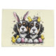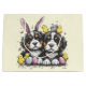 Niedliche Darstellung der Berner Berghunde, die zu Ostern verkleidet sind. Ideal für Liebhaber von Haustieren oder Hundeeltern zu Ostern.
