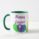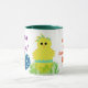 Einmalige, maßgeschneiderte Ostersonnige Ostersonnige Tasse der Happy Oaster Liebe. Personalize To field with YOUR NAME and AKTUELLE YEAR in orange text. Niedliches, gelbes Babychick, das aus seinem gestreiften, blauen und grünen Ei mit großen runden schwarzen Augen und niedlicher orangefarbener Schnauze geschlüpft ist, mit goldenem Glitzer auf seinen Flügeln und blauem Glitzer auf seinem Kopf und einem geschlüpften Streifen, der einem Haufen grünen Osterkorbgras sitzt. Drei geschmückte Ostereier stehen neben ihm mit blauen Polka-Punkten, grünen und weißen Streifen, und hübschen lila Ei mit grüner Blume und dem Aussehen des Eises. Die Tasse für Kinder jeden Alters für die Osterfeiertage. Beginnen Sie eine Familientradition und erhalten Sie für jedes Kind mit Name und Datum eine individuelle Ostersonnensaft-Tasse. Schön, in ihre Osterkörbe zu legen. Einzigartige Tasse für heiße Schokolade, Milch, Tee oder Kaffee. HINWEIS: Mein Original Graphic Art Handgemalt Digital Designs kann nicht verändert oder reproduziert werden Copyright © 2013 TamiraZDesign. Alle Rechte vorbehalten. Besuchen Sie meinen Laden für weitere originelle Artikel: www.zazzle.com/tamirazdesigns*