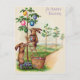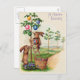 In diesem Frühling schicken Sie jemandem einen Ostergruß! Dieser Vintage Ausdruck zeigt Osterbüne, die farbige Ostereier von Bäumen pflücken.