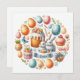 Dies ist eine farbenfrohe Osterillustrierung. Es verfügt über zwei weiße Kaninchen in der Mitte, eine Vielzahl dekorierter Ostereier, und einen traditionellen Osterkuchen, überragt mit Eis und farbenfrohen Dekorationen wie Mini-Eier. Zu den weiteren Elementen zählen ein Schmetterling, Blume, ein rosa Kuchen mit Erdbeere oben, Geschenkboxen, Bänder und ein kleiner Korb mit Bogen. Das Wort "Ostern" wird auf einem Band-Banner angezeigt.