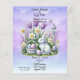 Laden Sie Freunde und Familie zu einem Osterbrunch ein, gefolgt von einer Ostereierjagd, Lila Wolkenhintergrund mit Osterdesign in Weiß und lila.