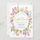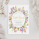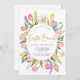 Farbenfrohe Osterbrunch-Einladung mit einem Rahmen von Aquarellblumen wie Tulpen und Narzissen.