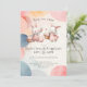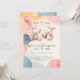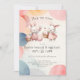 Eine süße und charmante Einladung für Ihren Osterurlaub. Mittag-, Brunch- oder Gartenauswahl. Ein Junge und ein Mädchen Kaninchen mit einem Korb Ostereier.