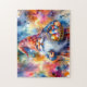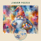 Funny Relax Osterpuzzle - Ostergenom mit farbenprächtigem Ei und Korb - Dieser niedliche, farbenfrohe, generative Inhalt ai Design zeigt einen niedlichen Ostergenom, der ein buntes Osterei in der rechten Hand hält und einen Osterkorb voller bunter Eier in seiner links Hand hält. Der Hintergrund ist farbenfroh, mit Acrylfarbspritzen in rot, gelb, blau. Das macht ein schönes Ostergeschenk für sich und Ihre Freunde und Familie.