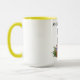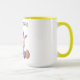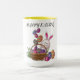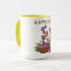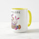 Osterzweifarbene Combo-Tasse mit hellen, korb- und farbigen Eiern.