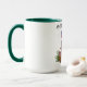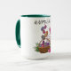 Osterzweifarbene Combo-Tasse mit hellen, korb- und farbigen Eiern.