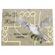 Weiße Taube mit Olivenzweig. Die Schaltfläche "Weitere Anpassung" hilft Ihnen bei allen Änderungen in Bezug auf den Stil, die Farbe, den Text oder die grafische Platzierung des Schriftartes.