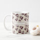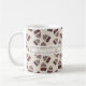 Eine andere Interpretation von Ostertassen. Für diejenigen unter Ihnen, die nach einzigartigen und trendigen Designs suchen. Ein schokoladenbraunes und weißes geometrisches Muster auf einem elfenbeinernen oder cremefarbenen Hintergrund. Der Text ist vollständig anpassbar, ebenso wie die leicht transparente Rechteckform. Genießen Sie Ihren Morgenkaffee in dieser charmanten Tasse.