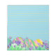 Ein hübsches, blau-gelb ausgekleidetes Notizblock zu Ostern mit einem weißen Kaninchen in einem Stück dekorierte Eier zwischen den lila Crocus Blume und weichen rosa Tulpen illustriert mit Aquarell. Ein buntes Ostergeschenk!