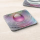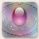 Pastellblau, Lavendel und rosa Design mit einem durchsichtigen rosa Ei in einem silberfarbenen filigranen Rahmen, umgeben von einem leicht silberfarbenen ovalen Rahmen-Set mit vier glatten Edelsteinen wie farbenfrohen Eiern.