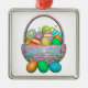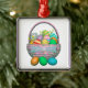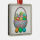Metal hängende Ornamente mit meinem Design von bunten bemalten Ostereiern in einem hübschen Korb mit Text, der sagt "Happy Oaster".