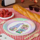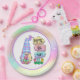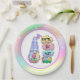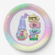 Eine Rainbow Pastel Papier Abendplatte aus einem Niedlichen Gnome mit Blick auf die Ostereierjagd.