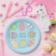 Ostereier in Farbe auf hellblauen Tellern. Text für Ostern, Ferien, Geburtstag und mehr personalisiert.