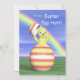 Eine Ostereierjagdeinladung mit meinem Bild eines kleinen Hühnchens, das aus einem Ostereier auftaucht.