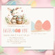 Karo aus dieser niedlichen Ostereier-Jagd-Einladung! Das Design der Karte zeigt einen zauberhaften Hasen, der einen Korb mit Wildblumen und einigen Schmetterlingen hält, und die Informationen über die Feier sind ganz auf Ihre spezielle Veranstaltung zugeschnitten. Warten Sie nicht - handeln Sie schnell und verbreiten Sie das Wort über Ihre anstehenden Osterfestlichkeiten. Vielen Dank!