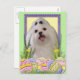 Dieser maltesische Hund ist umgeben von Ostereiern dekorierten Keksen und freut sich darauf, Ihnen bei der Versendung von Ostergrüsse und der Begrüßung im Frühling zu helfen. Dieses Design ist in mehr als 70 Hunderassen erhältlich. Wenn Sie Ihren Lieblingshund nicht sehen oder wenn Sie Ihren eigenen Hund in diesem Design haben möchten, kontaktieren Sie mich einfach. Es gibt auch eine Version dieses Designs, in die Sie Ihr eigenes Foto hochladen können.
