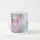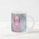 Pastellblau, Lavendel und rosa Design mit einem durchsichtigen rosa Ei in einem silberfarbenen filigranen Rahmen, umgeben von einem leicht silberfarbenen ovalen Rahmen-Set mit vier glatten Edelsteinen wie farbenfrohen Eiern.