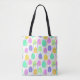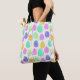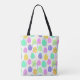 Diese Tasche hat ein Osterdesign von Eiern in lila, gelb, grün, blau und rosa verstreut mit ihren Konturen.