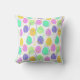 Dieses Kissen hat ein Osterdesign von Eiern in lila, gelb, grün, blau und rosa verstreut mit ihren Konturen.