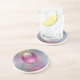 Pastellblau, Lavendel und rosa Design mit einem durchsichtigen rosa Ei in einem silberfarbenen filigranen Rahmen, umgeben von einem leicht silberfarbenen ovalen Rahmen-Set mit vier glatten Edelsteinen wie farbenfrohen Eiern.