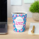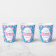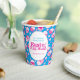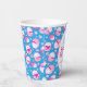 Personalisieren Sie diese rosa, blauen und weißen Ostereier Jagen Papiertassen mit Ihrem eigenen Namen und Jagddatum. Vergnügen Sie sich bei einer Ostereierjagd oder einem Osterfest. © Original Grafik Ei und Blume Kunst und Design von Sarah Trett.
