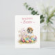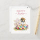 Osterpostkarte mit einem Welpen mit Kirschblüten und Ostereiern. Personalisierbar.