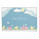 Niedliche Paperschnitt-Küken auf der Wiese, versteckte Ostereier, Blume und Schmetterlinge, glückliche Frühlingslandschaft, Osterferien-Eierjagd Poster